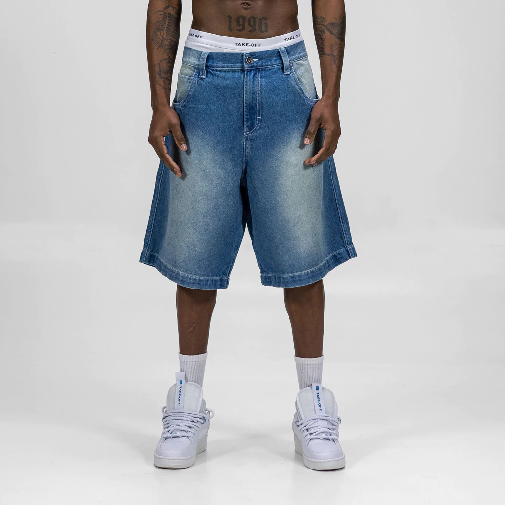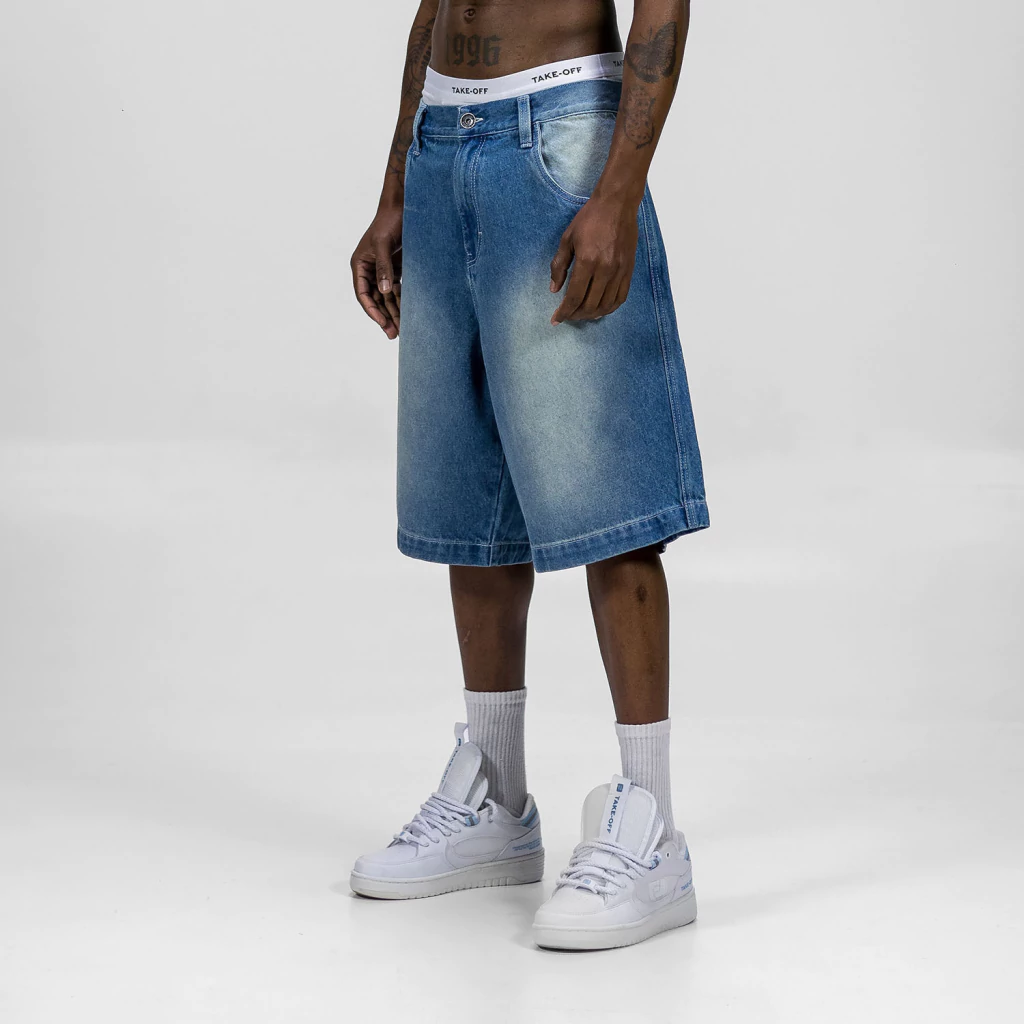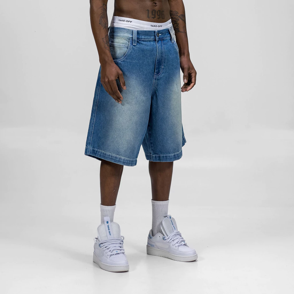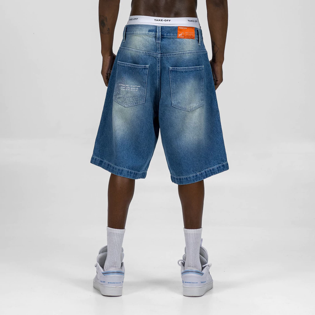 O Jorts Jeans Baggy Take Off possue detalhe em bordado e aplicação de tag externa. Peças produzidas em jeans de alta durabilidade e com modelagem exclusiva.
